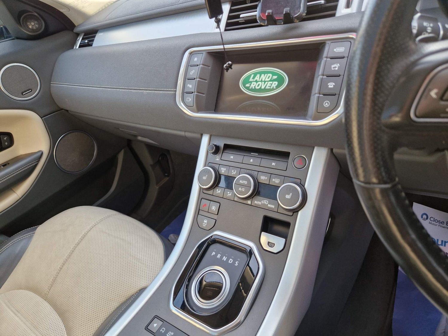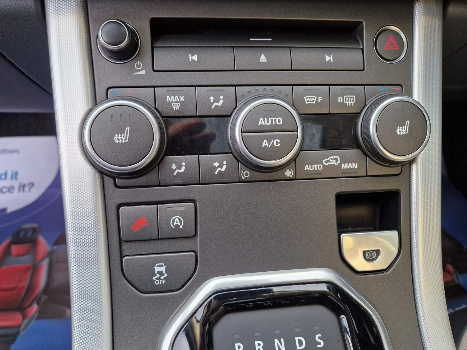 Autonomous Emergency Braking, Bluetooth Audio Streaming, Bluetooth Phone Connection, Bonnet Vents, Carpet Mats - Front and Rear with Edging - Lunar, Centre console - Covered Storage Compartment, Climate Control - Automatic with Air Filtration and Air Quality Sensing for Automatic Recirculation, Climate Control - Rear Vents, Cruise Control, DSC - Dynamic Stability Control, Daytime Running Lights, Door Mirrors - Electrically Adjustable - Heated and Power Folding with Memory Function, Door Mirrors - Narvik Black, EBA - Emergency Brake Assist, EBD - Electronic Brake-Force Distribution, EDC - Engine Drag Torque Control, EPAS - Electronic Power Assisted Steering, EPB - Electronic Park Brake, Electric Windows - Front and Rear, Evoque Badge in Red, Exterior Door Handles - Premium Body Coloured, Exterior Mirrors - Auto Dipping in Reverse Gear, Fender Vent Blade - Narvik Black, Footwell Lights - Front, Front Fog Lights, Front and Rear Bumpers - Body Coloured, Grille Bars - Narvik Black, Grille Surround - Corris Grey, HDC - Hill Descent Control, HDD Premium Navigation with Touch Screen, Hazard Warning Lights Under Heavy Braking, Headlight Power Wash, Headlining - Cirrus Morzine, Heated Front Seats, ISOFIX Child Seat Anchor Points, Illuminated Tread Plates with Range Rover Lettering, InControl Protect - 3 Year Subscription, InControl Touch Plus - Level 2, LED Front Signature Lights, Land Rover - Tyre Repair System, Lane Departure Warning, Loadspace Cover, Locking Wheel Nuts, Luggage Compartment - Anchor Points, Multi-Function Steering Wheel, Paddle Shift, Parking Aid - Front, Parking Aid - Rear, Parking Aid - Rear View Camera, Proximity Sensing and Touch Detection For Overhead Map Lights, Push Button Start, RSC - Roll Stability Control, Rain Sensing Windscreen Wipers, Rear Cupholders, Remote Central Locking, Roof - Body Coloured, Seats - 12-Way Power Driver Seat with Lumbar Support and Memory, Seats - 12-Way Power Passenger Seat with Lumbar Support and Memory, Seats - 3 Seat Bench in Rear, Seats - 60/40 Split, Seats - Driver Height Adjustable, Seats - Driver Memory, Seats - Front Passenger Memory, Seats - Lumbar Support - Drivers, Seats - Lumbar Support - Passengers, Seats - Rear Centre Head Restraint, Side Sills - Anthracite, Speakers x11, Stainless Steel Sports Pedals, Steering Column - Manual For Height and Reach Adjustment, Steering Wheel - Perforated Oxford Leather, Subwoofer, Sun Visors - Illuminated Vanity Mirrors, TCS - Traction Control System, TPMS - Tyre Pressure Monitoring System, TSA - Trailer Stability Assist, Tailgate Finisher in Narvik Black, Terrain Response, Torque Vectoring, Tri Colour Ambient Mood Lighting, Trim Finisher - Textured Aluminium, Trip Computer, USB Socket - Front, Voice Control - Say What You See, Windows - Heated Rear Windscreen, Windscreen - Heated, Windscreen Washer Jets - Heated, Xenon Headlamps with LED Signature, 12V Power Socket, 12V Socket in Loadspace, 20in Alloy Wheels - 5 Split Spoke Style 504 - Sparkle Silver Finish, 380W Meridian Surround Sound System, 5in TFT Driver Information Centre, 8in High Resolution Touch Screen, ABS - Anti Lock Braking System, AM-FM Radio, Airbags - Driver Knee, Airbags - Driver and Passenger Side, Airbags - Full Size Driver, Airbags - Full Size Passenger, Airbags - Row One and Two Head Curtain, Alarm, Armrest - Rear Centre with Storage Compartment and 2 Cupholders, Audible Seat Belt Warning, Audio Connectivity System, Audio System - DAB, Auto-Dimming Interior Mirror, Automatic Headlight Levelling, Automatic Headlights
